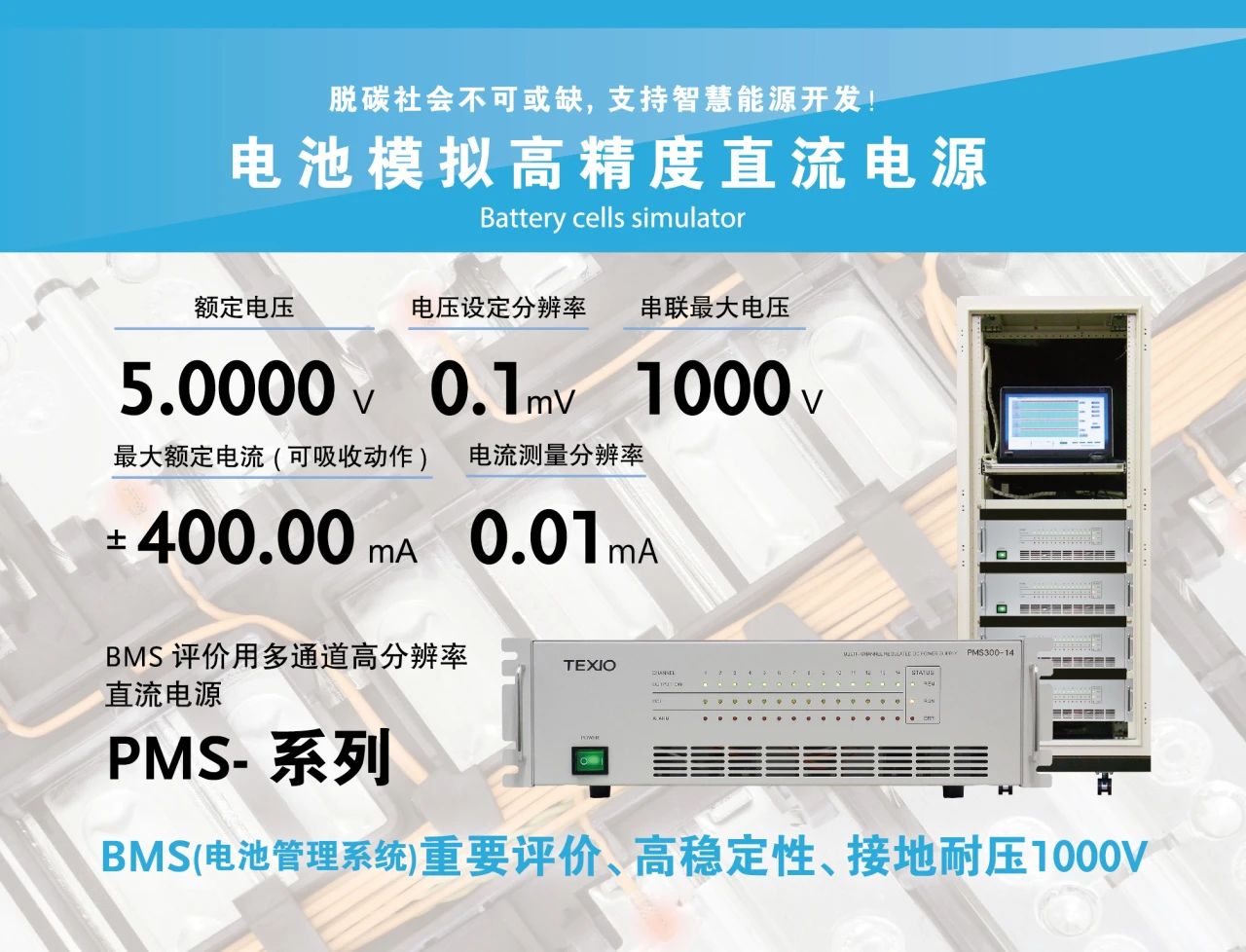 推出新款多通道直流穩(wěn)壓電源PMS-系列,用于高精度模擬電池單體電壓,評估電池管理系統(tǒng)BMS單元;多通道線性直流電源PW-A系列,用于半導(dǎo)體芯片及電子元器件等的測試評估;高電壓小電流600V /0.1A 的PA-B系列及雙通道寬范圍直流電源PSF-L系列。