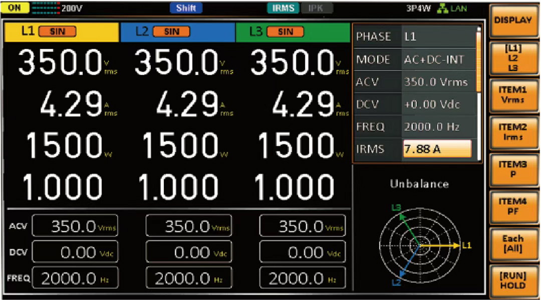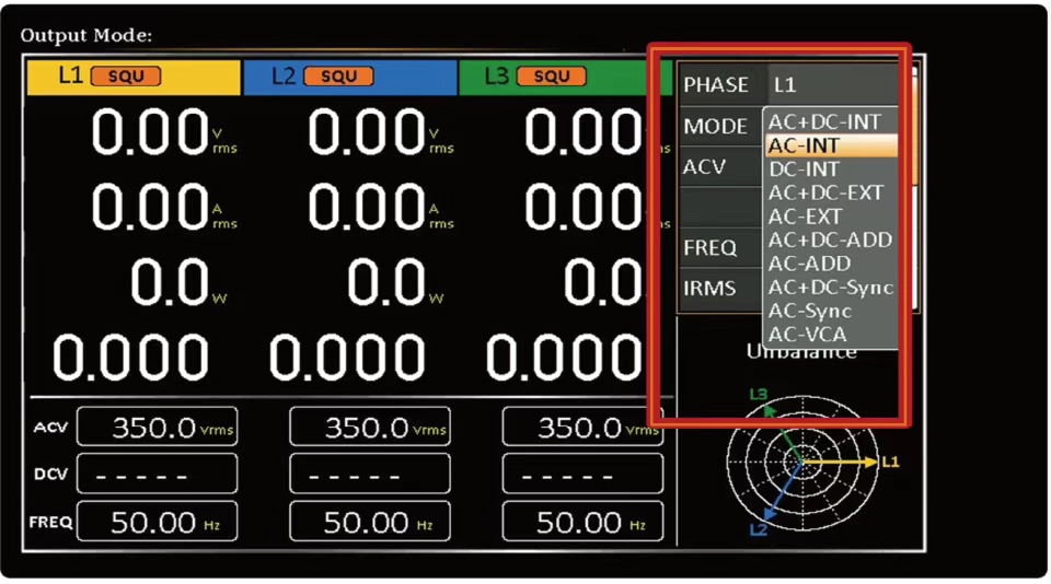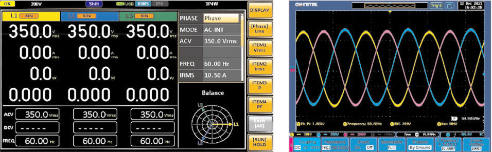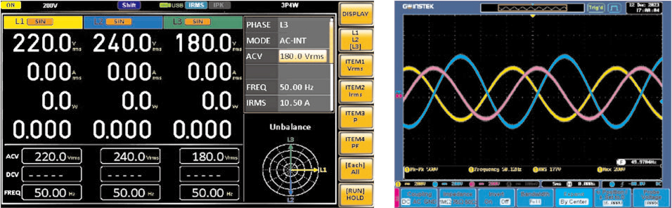 ASR-6000 系列具有不平衡和平衡的三相輸出模式。 在交流三相輸出模式下,用戶(hù)可以設(shè)定 L1、L2 和 L3 的相位角進(jìn)行控制。主要應(yīng)用:三相輸入電源產(chǎn)品,模擬三相輸入不平衡與缺相時(shí),三相電源輸入產(chǎn)品恢復(fù)三相平衡能力。