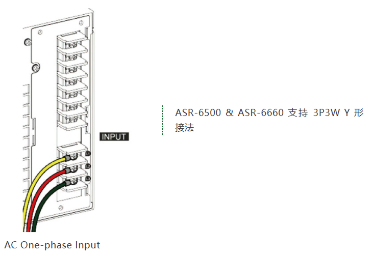 ASR-6000 系列具有多樣化的輸出功能,包括三種模式:1P2W、1P3W 和 3P4W。相電壓的最大輸出為 350Vrms,線(xiàn)電壓的最大輸出為 700Vrms。交流三相輸出(3P4W)模式下,每相都支持獨(dú)立輸出設(shè)定。以