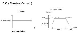 定電流模式下,負載單元根據(jù)所設置的值吸入電流量,無論電壓多大,電流保持不變。CC模式下共有兩個檔位:高(HI)與低(LOW)檔位,低檔位的分辨率比高檔位高,用于精密測試,當電流超出低檔位范圍時就需切換配置文件位至高檔位。PEL-2000A系列可程序直流電子負載,低范圍所能承受的功率為該型號最大的額定功率。CC模式下包含靜態(tài)與動態(tài)兩個主要模式,靜態(tài)模式用于穩(wěn)定測試,動態(tài)模式用于測試瞬間負載,在動態(tài)與靜態(tài)下也可使用Go /No Go 功能。