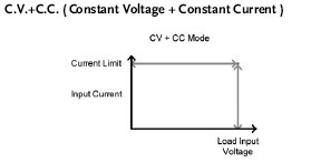 在定電壓模式下,可設定一個電流限制,可進入CV+CC模式。當電壓輸入大于A值,并且輸入電流低于限制電壓時,信道運行在CV模式,當電流大于限制時,信道將進入CC模式。