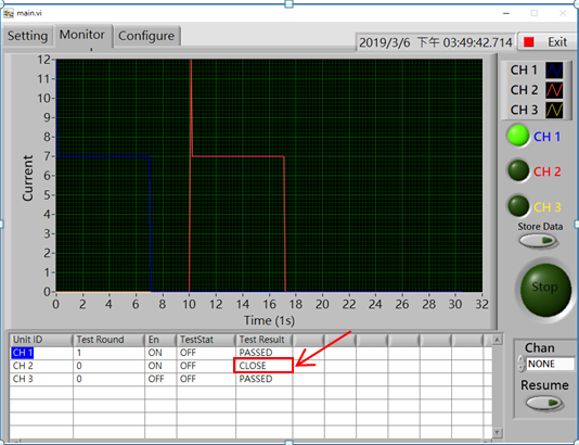 測試軟件也加入了一個特別的功能,當(dāng)異常的繼電器被更換成下一個正常的繼電器后,程序可以繼續(xù)執(zhí)行測試,被更換的繼電器測試數(shù)據(jù)會重新累計,而沒被更換繼電器測試數(shù)據(jù)會繼續(xù)累計計算。此功能可透過程序中的 Chan 及 Resume 來執(zhí)行達成