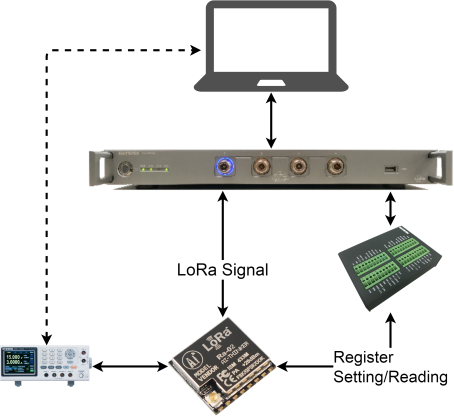除了成品的信令測試(Signaling Test),C-1201是一個連接C-1200到LoRa模塊的轉接盒,透過UART/ SPI/ I2C接口去直接控制DUT,可以用來進行半成品的非信令測試 (Non-Signaling Test)。